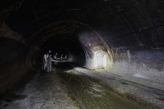 As we descend the wide, deep access shaft, the adrenaline rises. It's a strange sensation to enter the bowels of the city, a dark, cold tunnel that is nevertheless strangely beautiful. Because of its size, because of its symbolism, because of the brown water that flows freely, like a river, because of the darkness on the horizon, dappled with small lights that guide the expedition.