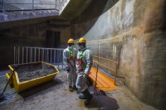 Zealous technicians accompany us. They're like canyon doctors, looking for illnesses and finding cures. They belong to the collector inspection team, which is supporting our visit at the moment, particularly in creating safety conditions. Some of them have recently been recruited and are still in training, our cicerone explains to us.