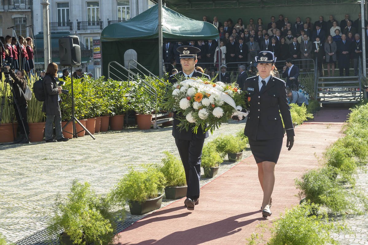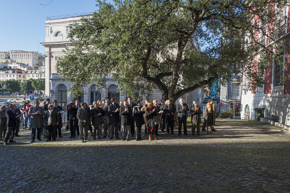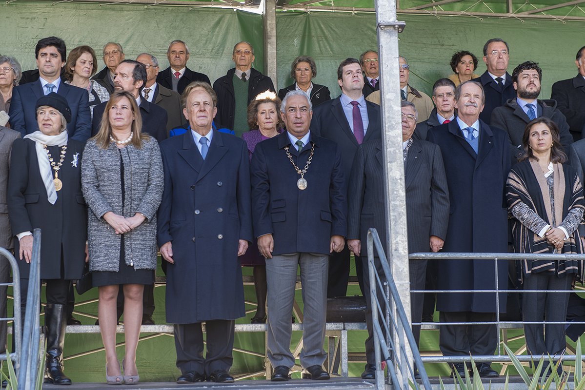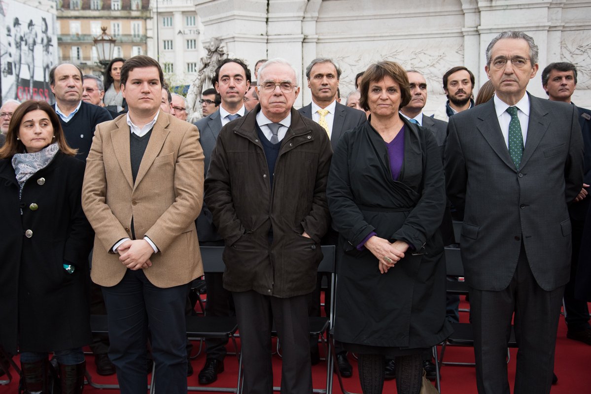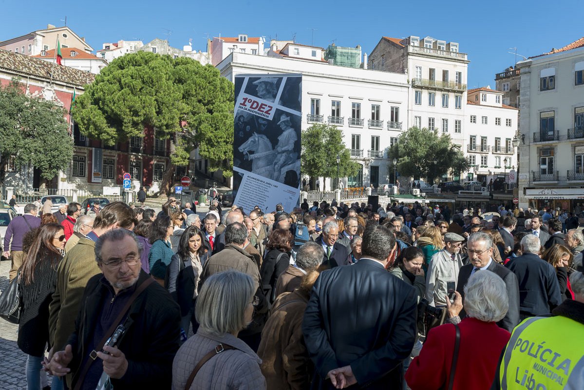 Na tribuna, Rocha Vieira, em representação da Presidência da República, a vice presidente da Assembleia da República, Teresa Caeiro, Duarte Nuno de Bragança, o presidente da Sociedade Histórica de Independência de Portugal, Alarcão Troni, o presidente do Movimento 1º de Dezembro, Ribeiro e Castro, deputados, Helena Roseta, presidente da Assembleia Municipal, os vereadores Fernando Medina, Manuel Salgado, Graça Fonseca, Catarina Vaz Pinto, Duarte Cordeiro, Jorge Máximo, Carlos Castro, António Proa, João Gonçalves Pereira, os presidentes das Juntas de Freguesia de Santa Maria Maior, Miguel Coelho, de Campo de Ourique, Pedro Cegonho, e do Lumiar, Pedro Delgado Alves, representantes das forças armadas e das forças de segurança.