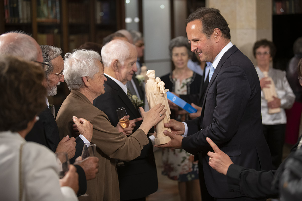 No brinde após a cerimónia civil, Fernando Medina, presidente da Câmara Municipal de Lisboa, entregou aos ´Casais de Ouro` uma imagem do ´santo casamenteiro`, e o filme do dia dos seus casamentos, há 50 anos atrás. Os votos foram renovados já durante a tarde, na cerimónia religiosa, na Sé de Lisboa.