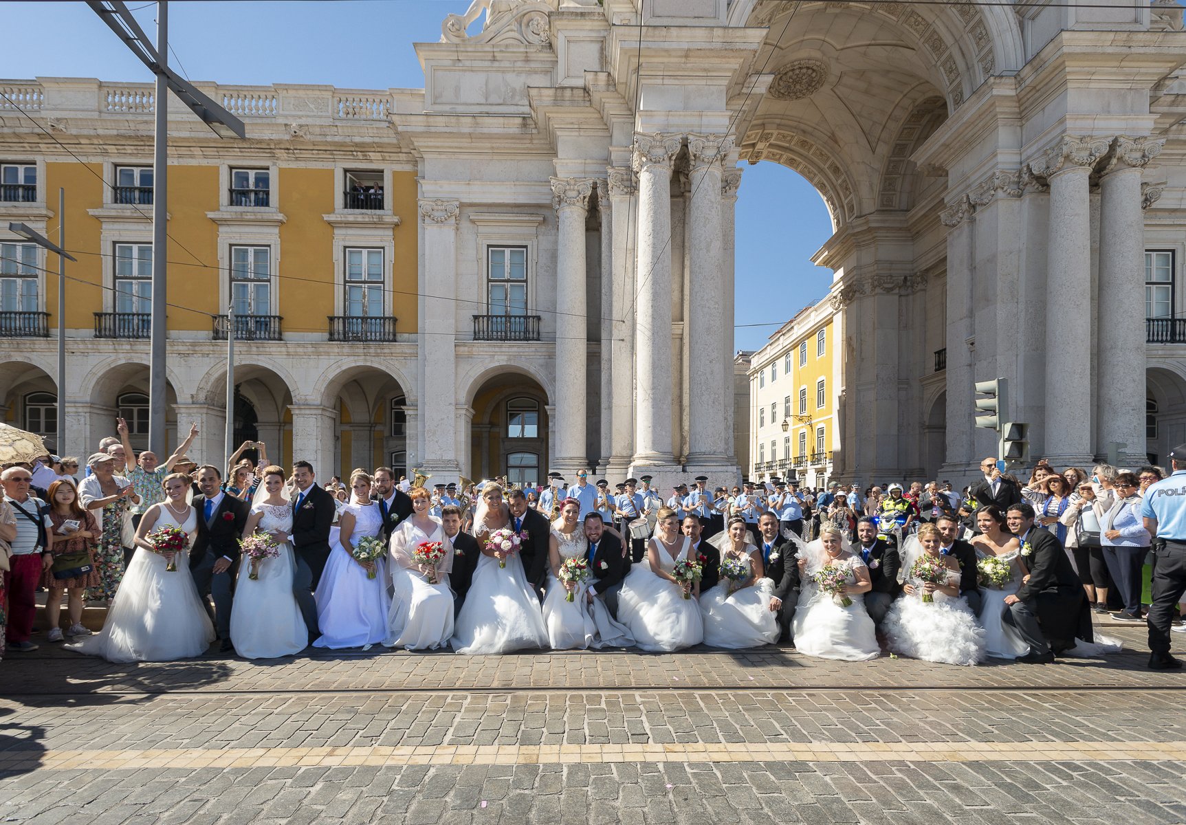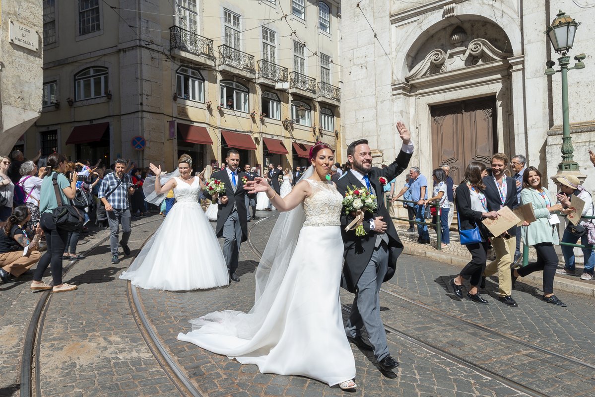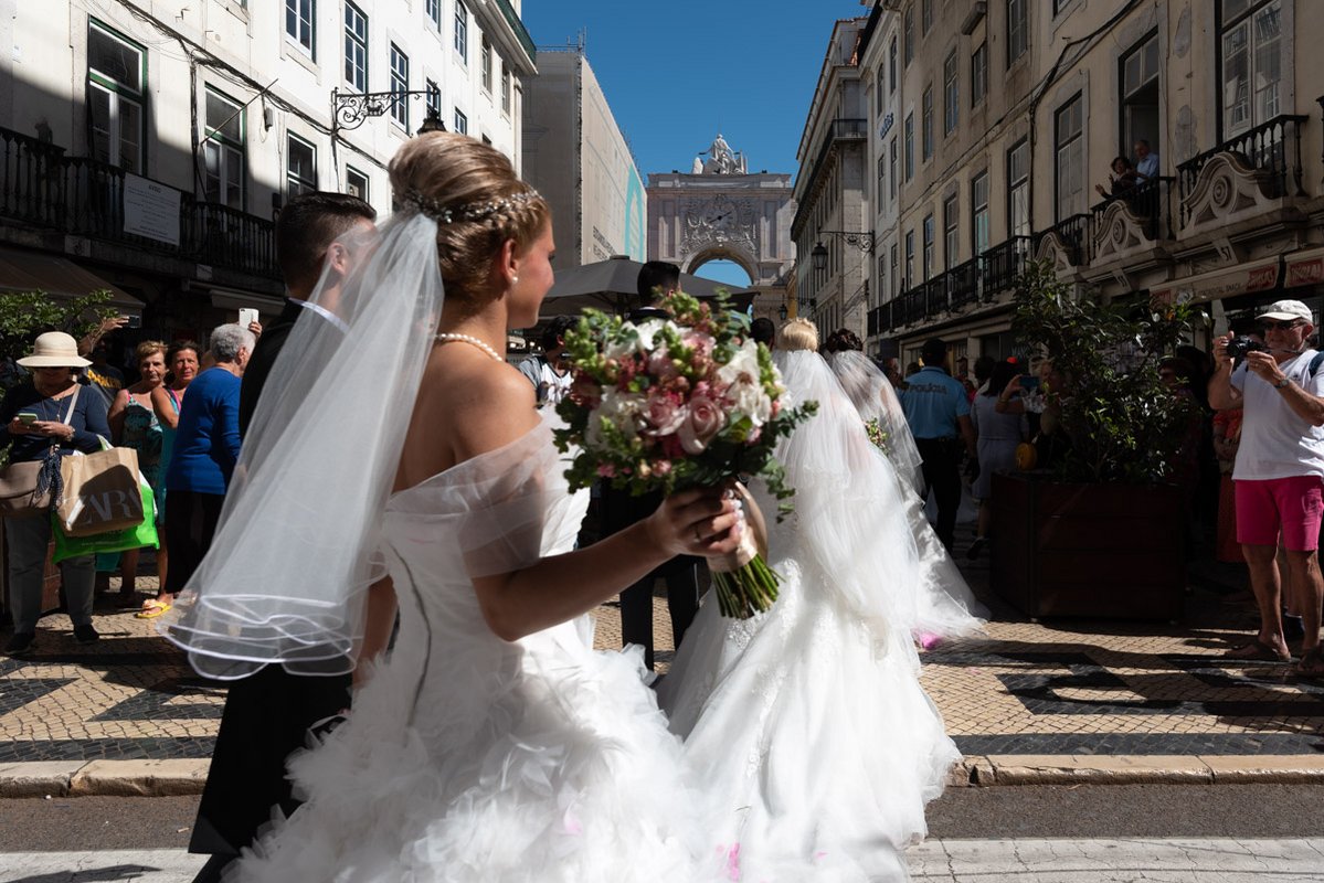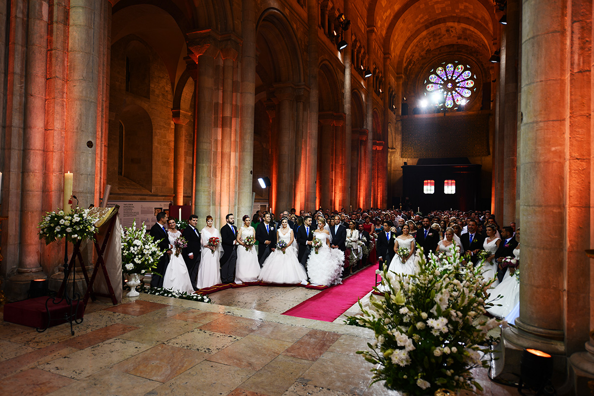 Bem perto, na Igreja de Santa Maria Maior, as noivas e os noivos do casamento religioso subiram ao altar para as suas “juras de amor eterno”.