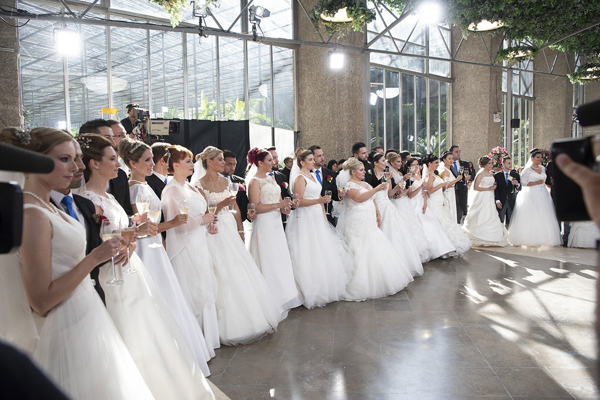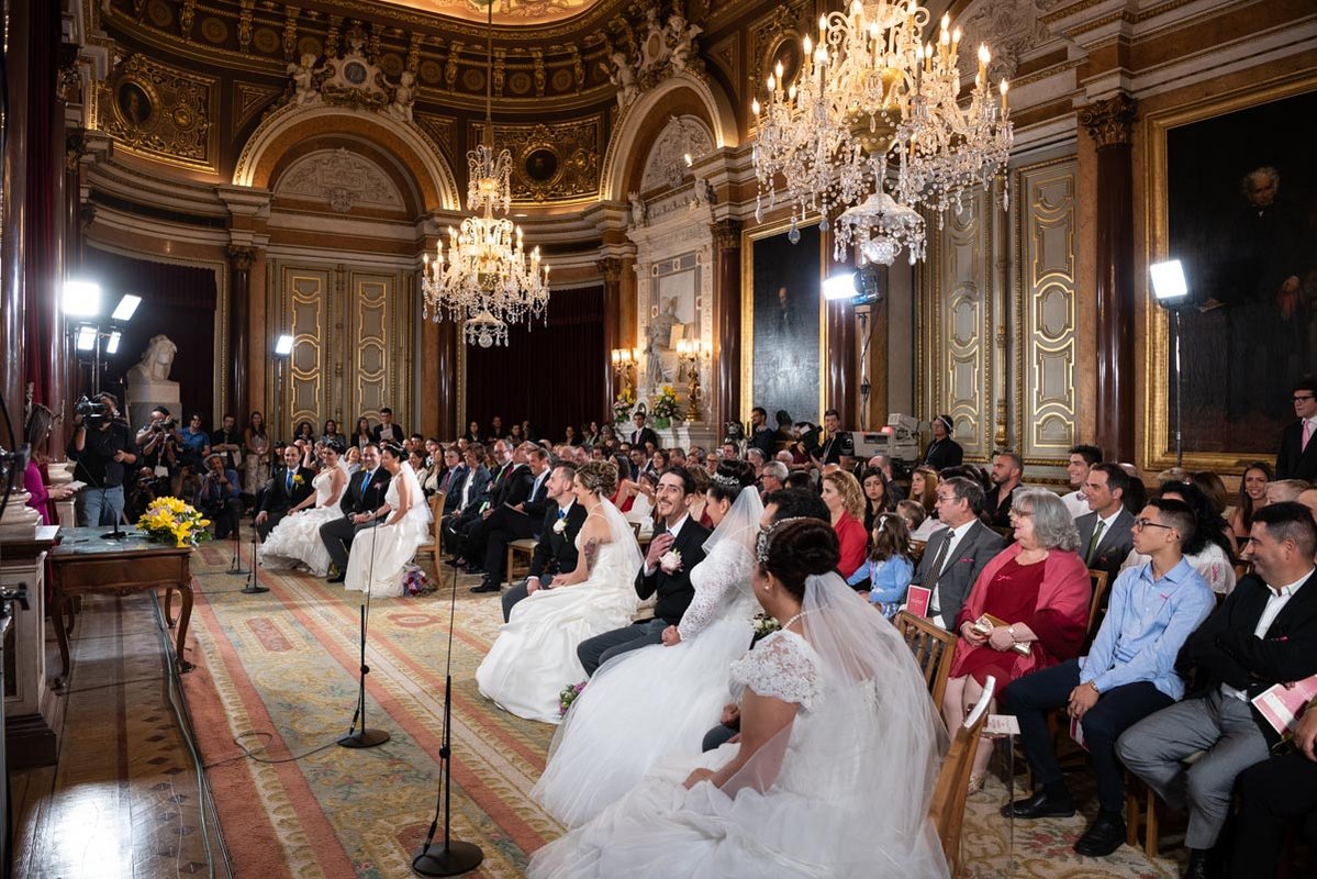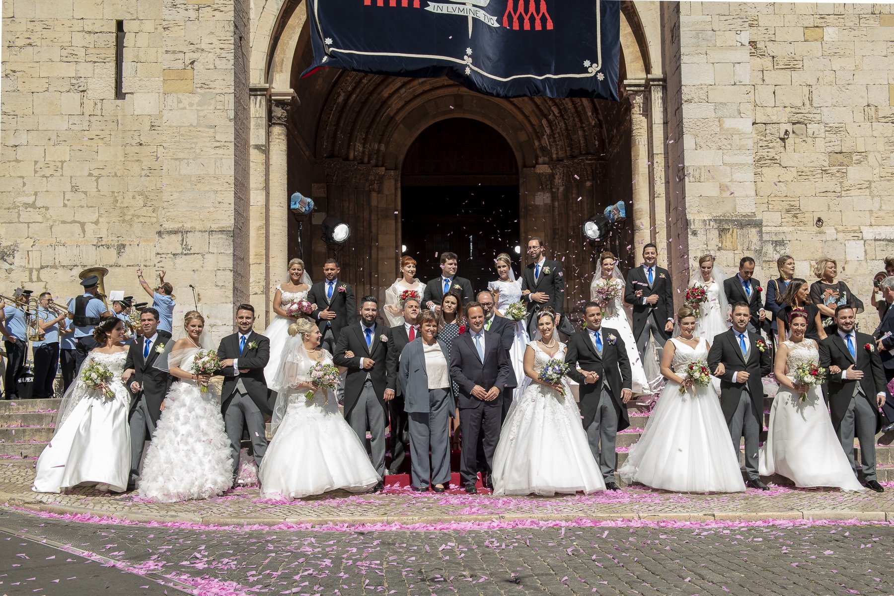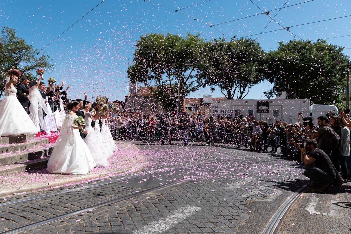 Bem perto, na Igreja de Santa Maria Maior, as noivas e os noivos do casamento religioso subiram ao altar para as suas “juras de amor eterno”.