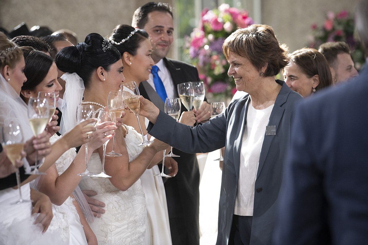 O dia começou com os casamentos civis, nos Paços do Concelho. Cinco, dos 16 casais desta edição, escolheram unir-se desta forma, numa cerimónia conduzida pela conservadora Ana Ferreira, e testemunhada por 13 casais de 1969.