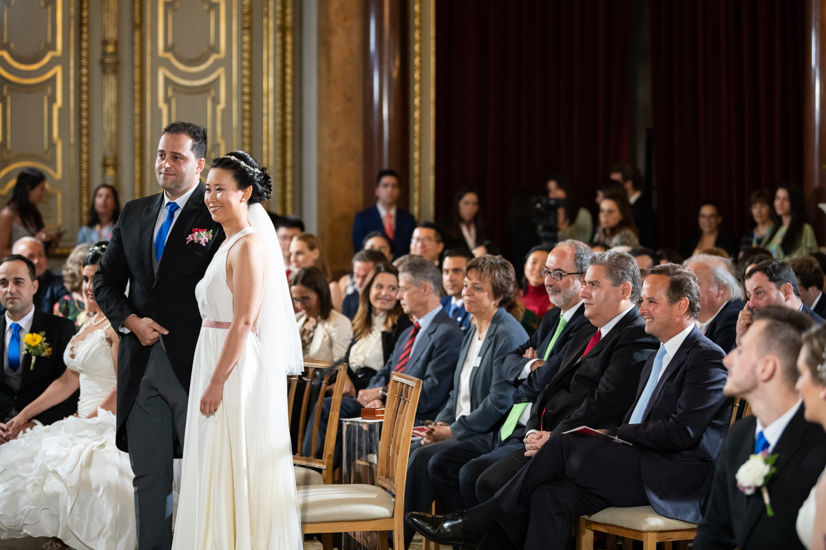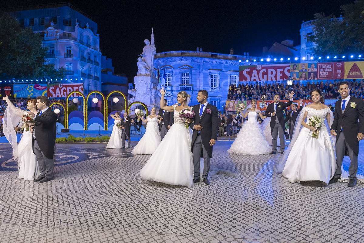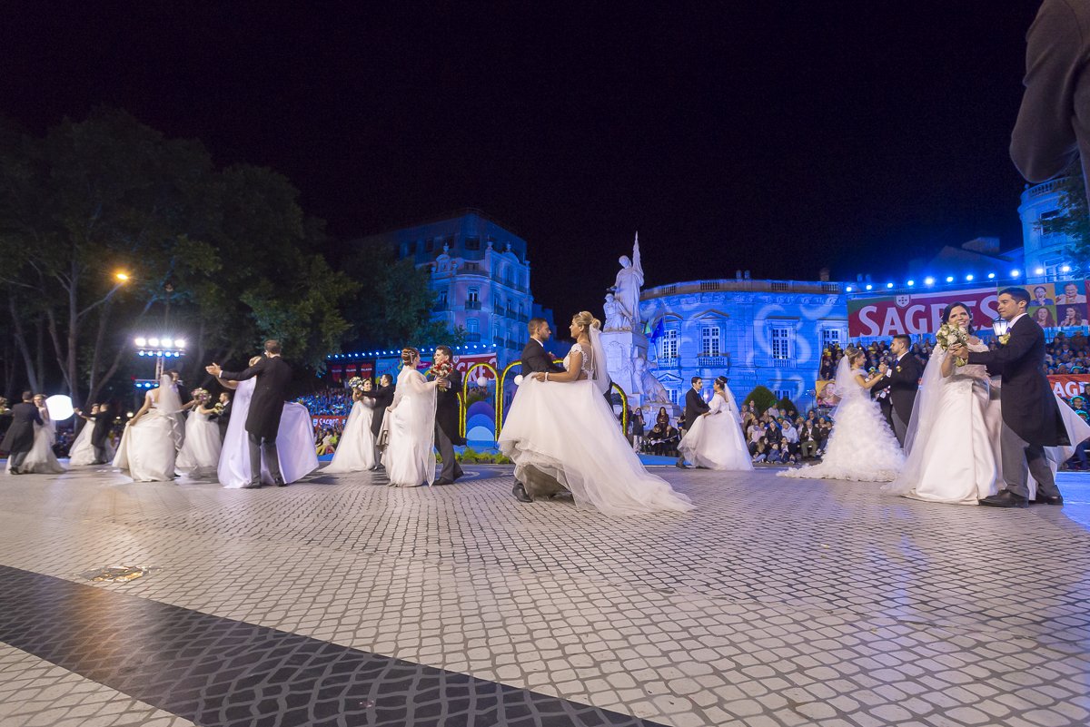 Após o tradicional brinde, os noivos abriram a boda com uma valsa dançada a preceito, antes de se juntarem às respetivas famílias e restantes convidados que, à mesa, esperavam o início do repasto. À noite, os noivos ainda tiveram forças, estimuladas pela felicidade, para desfilar na Avenida da Liberdade com as Marchas Populares.