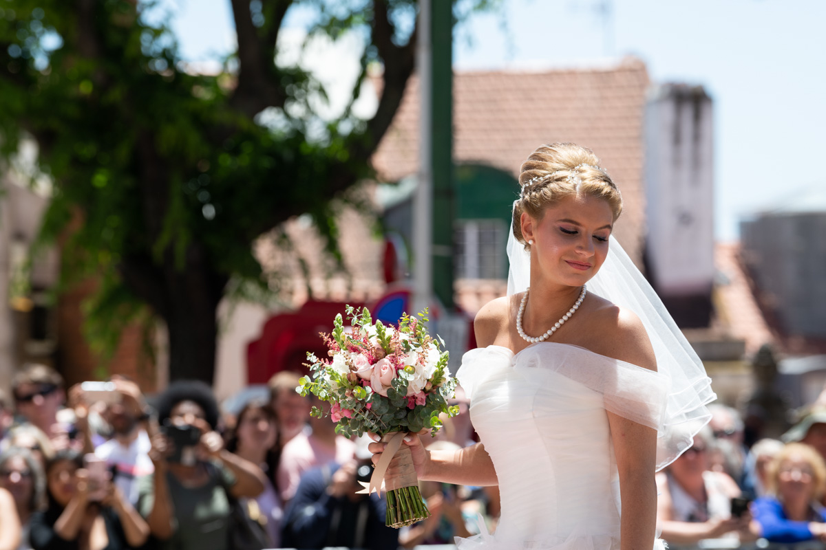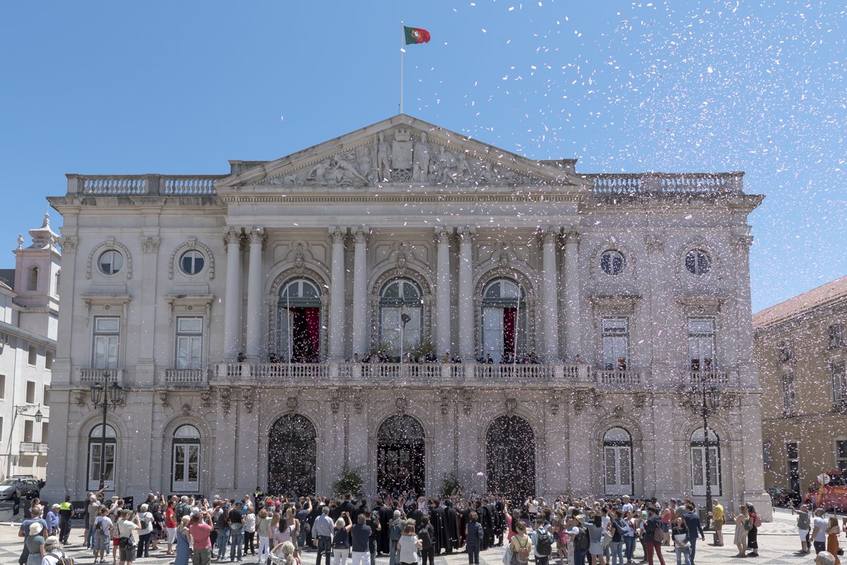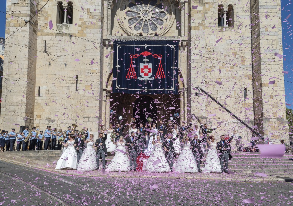 Já casados, pelo cónego Luís Manuel Silva, desceram a escadaria da Sé, ao som da Banda da Carris, para depositarem um girassol, símbolo da felicidade e fertilidade, na estátua de Santo António.