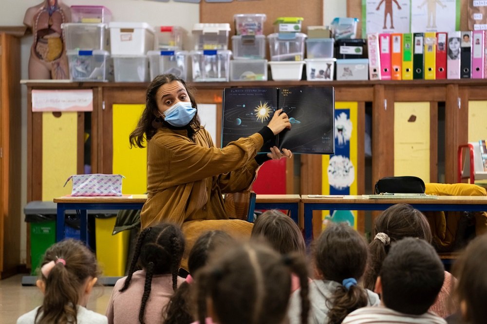 “Aqui Estamos Nós: Apontamentos para Viver no Planeta Terra”, foi a história lida à Lia, ao Wilson, à Ana Lúcia, ao Miguel, à Marta, ao Bihan, e aos colegas de turma. O livro, de Oliver Jeffers, procura explicar às crianças a diversidade nos seres humanos, respeitando todos os seus direitos.