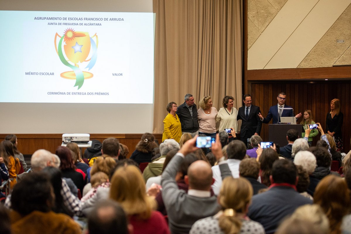 O Agrupamento de Escolas Francisco Arruda promoveu uma vez mais a cerimónia destinada a reconhecer os estudantes que se destacaram ao longo do ano e juntou, entre pais, alunos e professores, mais de trezentas pessoas no Centro de Congressos de Lisboa, em Alcântara. Fernando Medina participou no evento com Davide Amado, presidente da Junta de Freguesia de Alcântara.