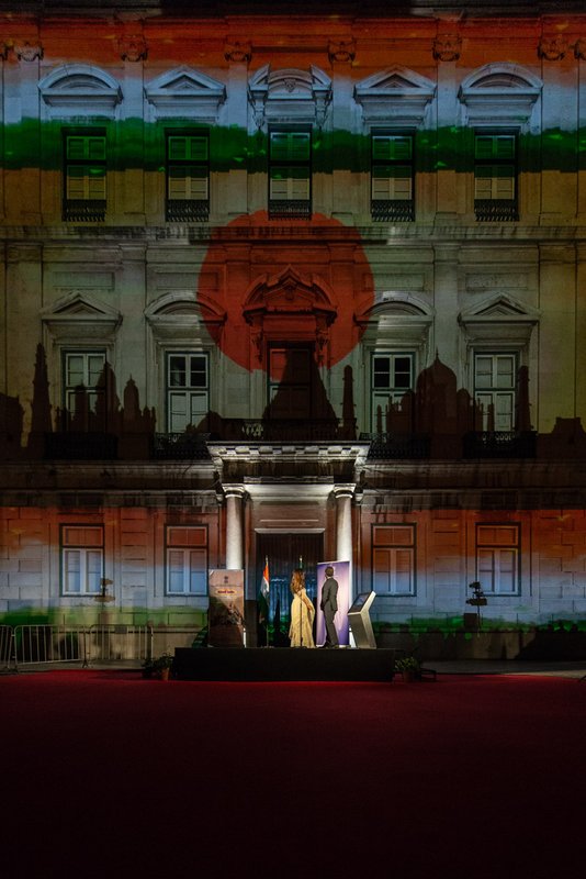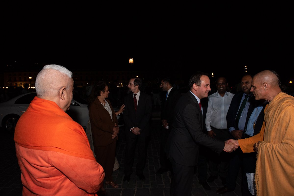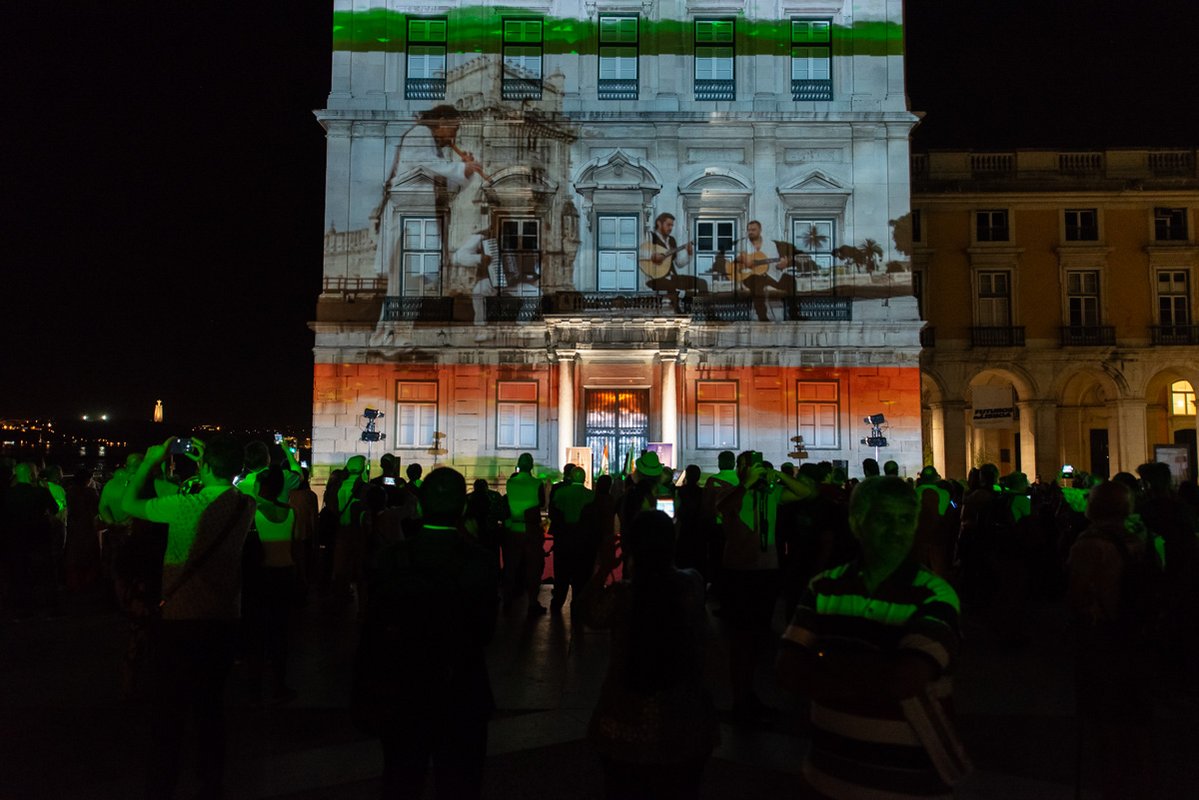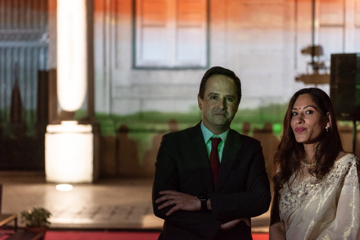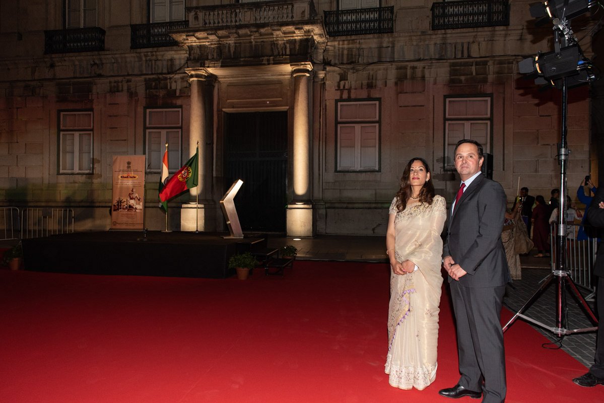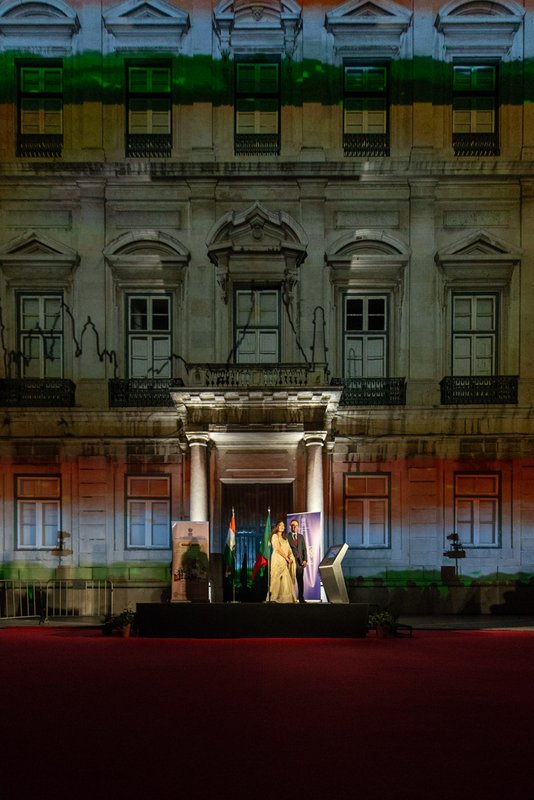 O presidente da autarquia lisboeta, Fernando Medina, e a embaixadora da República da Índia, K. Nandini Singla, premiram em conjunto o botão que deu início à projeção. Na ocasião, a representante diplomática indiana agradeceu a presença do Corpo Diplomático que marcou presença e o apoio da Câmara de Lisboa que tornou possível esta iniciativa e lembrou o facto do primeiro ministro português, António Costa, fazer parte da Comissão destas comemorações e de ser uma figura popular nos media indianos onde, por vezes, é referido como o "Gandhi de Lisboa".