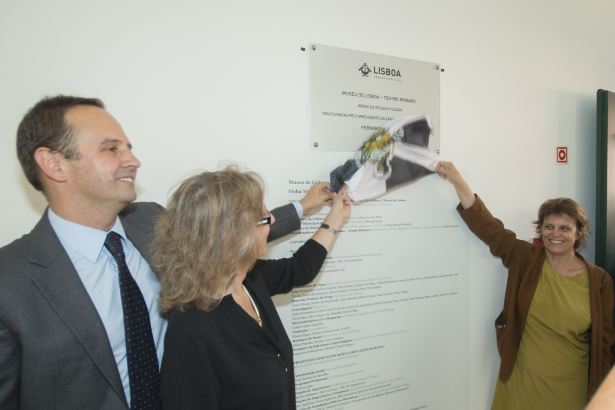 Fernando Medina, presidente da Câmara Municipal de Lisboa, acompanhado da vereadora da Cultura, Catarina Vaz Pinto, marcaram presença na cerimónia de reabertura, que teve lugar dia 30 de setembro, na entrada do "Teatro da antiga cidade de Olisipo", descoberto em 1798 "por ocasião da reconstrução da cidade após o terramoto de 1755".