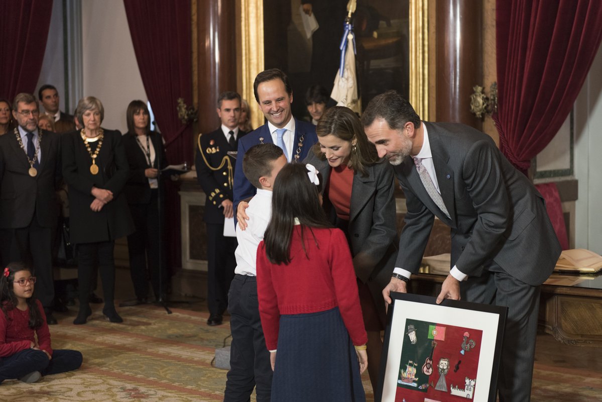 Filipe VI foi depois convidado a assinar o livro de honra da cidade, recebendo presentes das mãos de crianças da Escola Básica dos Olivais, EB Adriano Correia de Oliveira e do Instituto Espanhol.