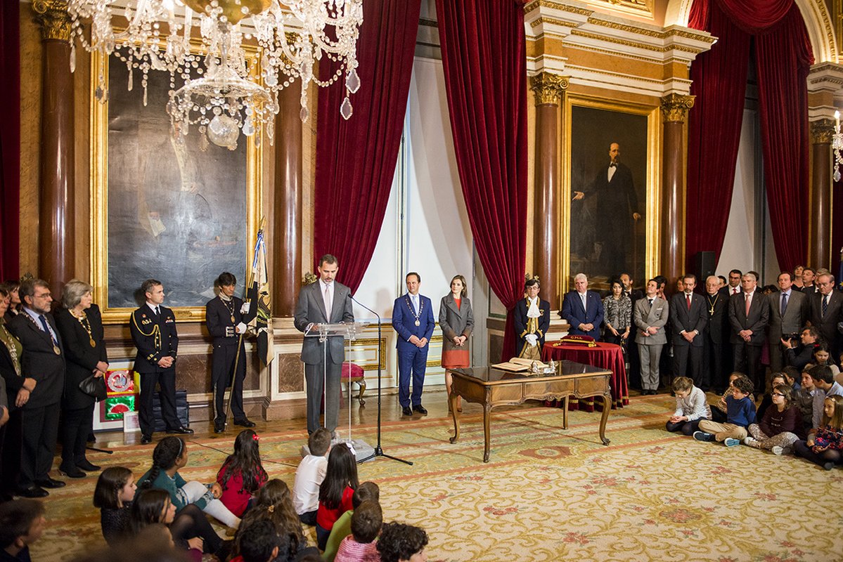 No seu discurso de boas vindas, o presidente da Câmara Municipal, começou por saudar as Altezas Reais transmitindo a enorme alegria da cidade e da Câmara em os receber e dirigiu uma palavra particular ao rei Filipe de reconhecimento pela forma como tem marcado o início do seu reinado como referencial de estabilidade politica e como promotor da imagem de Espanha.