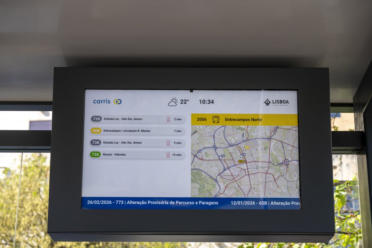 Os novos painéis estão a ser instalados de forma faseada. Segundo a Carris, estão previstos 60 equipamentos, dos quais 39 já se encontram colocados.