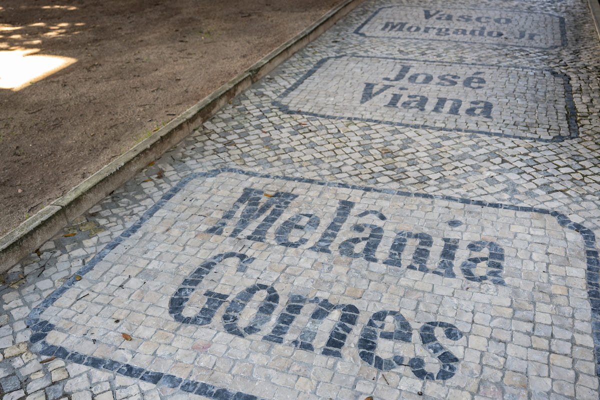 O Jardim Alfredo Keil, na Praça da Alegria, conta com mais 10 nomes de artistas na calçada portuguesa.