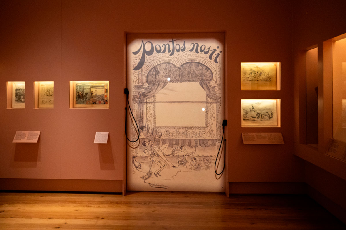 Da contextualização passa-se para o laboratório da criação. No núcleo dedicado aos “Jogos de Humor”, a exposição apresenta recursos gráficos e retóricos que Bordalo domina e transforma: metáforas visuais, deformações, metamorfoses, a cor como símbolo, experiências narrativas próximas da banda desenhada. Mariana Roquette Teixeira aponta esse objetivo de forma direta: “Procurámos dar a conhecer ao visitante os recursos humorísticos e gráficos do desenho, mas também retóricos, através das metáforas que Bordalo Pinheiro usava no seu trabalho.”
