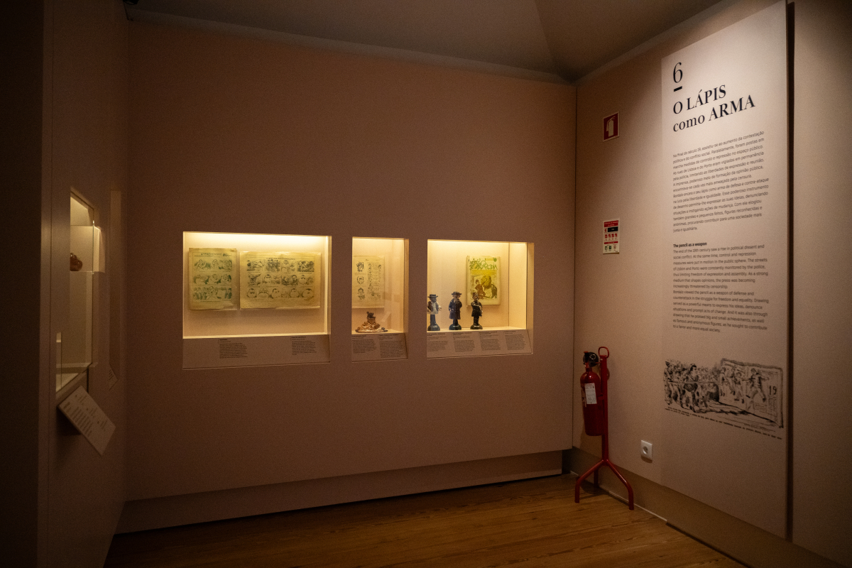 No final, a exposição sublinha o papel interventivo do artista. O núcleo “Lápis como arma” centra-se na liberdade de expressão e de imprensa, na censura e na necessidade de reação cívica. A curadoria recupera uma frase que resume esse princípio: “o jornal é como a rua, pertence a todos.” A imagem torna-se literal e política: a rua como lugar de liberdade e conflito; o desenho como gesto de resistência.